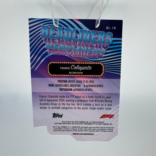 Franco Colapinto RC - Williams - Topps Finest F1 2024 - Die Cut Headliners 61/74